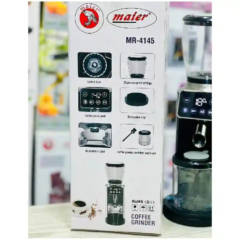 آسیاب قهوه مایر مدل MR-4145، یک دستگاه با کیفیت و کارآمد برای دوست‌داران قهوه است که می‌خواهند طعم و عطر قهوه تازه را به خانه بیاورند. این آسیاب با طراحی زیبا و مدرن، به راحتی در هر آشپزخانه‌ای جا می‌گیرد و به شما این امکان را می‌دهد که دانه‌های قهوه را به صورت دقیق و یکنواخت آسیاب کنید. موتور قدرتمند و تیغه‌های استیل ضد زنگ این دستگاه، به شما کمک می‌کند تا دانه‌های قهوه را به درجه‌ی دلخواه خود آسیاب کنید، از آسیاب درشت برای قهوه فرانسه گرفته تا آسیاب نرم برای اسپرسو.