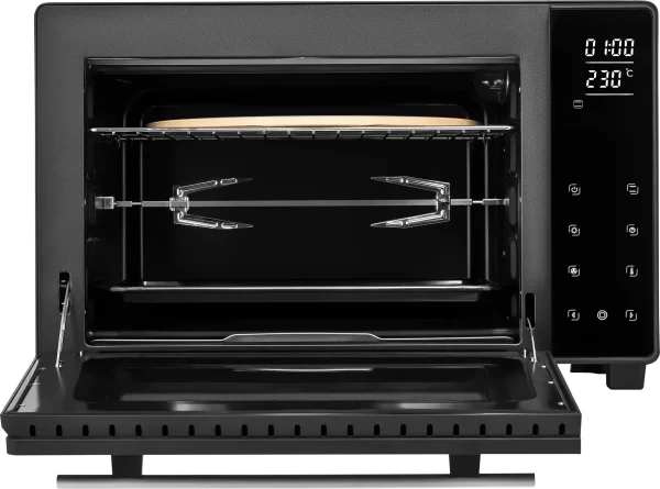 آون توستر با زبان طراحی جدیدی ساخته شده است. تصور بیشتر ما از آون توستر ظاهری قدیمی با پنل آنالوگ و دکمه های بزرگ است. اما این محصول فاصله زیادی با آن ها دارد و در واقع ظاهر آن بیشتر شبیه به سولاردام و مایکرویو است. پنل لمسی و صفحه نمایش اولین چیزی است که مدرن بودن دستگاه را به رخ می کشد. بدنه آن نیز اعم از درب، قسمت های کناری و دستگیره کاملا یک دست هستند. البته از درب شیشه ای آن نیز نباید غافل شد. شیشه ای بودن این درب به ما امکان مشاهده محتویات و نظارت بر آن را می دهد. یک عدد لامپ نیز قرار داده شده تا با روشن کردن آن بتوانید به صورت کامل غذای خود را مشاهده کنید. رنگ مشکی بدنه هم به شما این امکان را می دهد که در معرض حرارت بودن، هیچ تغییر رنگی ایجاد نمی کند.