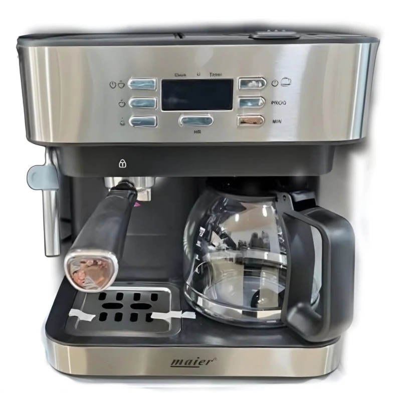 اسپرسو ساز مایر مدل MR-431 از جمله محصولاتی است که کارایی فوق العاده عالی دارد و عملکرد بی نظیری دارد. توجه داشته بیشد که این اسپرسو ساز توانایی فوق العاده ای دارد و به شما این امکان را می دهد تا توسط آن قهوه، کاپوچینو، اسپرسو، آب جوش و … را آماده نمایید و نهایت لذت را از آن ببرید. توجه داشته باشید که این اسپرسو ساز از توان 850 واتی بهره می برد که این امر در کارایی آن بسیار موثر واقع شده است. از دیگر ویژگی های این محصول می توان به فشار بخار 20 بار اشاره نمود که بسیار عالی می باشد و از جمله ویژگی بارز این محصول می باشد. از دیگر قابلیتهای این اسپرسو ساز مایر مدل MR-431 می توان به سینی چکه گیر، سیستم کاپوچینو ساز، قابلیت تولید کف شیر، نمایشگر LED و … اشاره نمود. در ضمن توجه داشته باشید از دیگر ویژگی های این محصول طراحی زیبای آن می باشد. همان گونه که می دانید ظاهر یک محصول در انتخاب آن بسیار مورد توجه قرار می گیرد. خوشبختانه اسپرسو ساز مایر مدل MR-431 نیز از طراحی بسیار زیبایی بهره می برد. به طوری که ظاهری بسیار شیک دارد. بدنه این محصول مشکی و نقره ای می باشد که همین امر آن را بسیار مورد توجه قرار داده است و زیبایی آن را دو چندان نموده است. در ضمن ناگفته نماند که جنس بدنه این محصول از استیل ضد زنگ می باشد. از دیگر ویژگی های ظاهری این محصول این است که از یک قوری بهره می برد که در جای مخصوص خود قرار می گیرد و جنس قوری از پیرکس نشکن می باشد. این اسپرسو ساز مایر مدل MR-431 از یک صفحه نمایش دیجیتالی به همراه یک دکمه بهره م یبرد که این صفحه نمایش وضعیت دستکاه را به اطلاع شما می رساند و از طریق دکمه ها می توانید کارکرد دستگاه را معین نمایید. در ضمن توجه داشته باشید که این اسپرسو ساز از سینی چکه گیر بهره می برد که قطرات نوشیدنی را در خود جمع می نماید و با توجه به این مسئله که سینی قابلیت جدا شدن دارد شما می توانید آن را به راحتی شستشو دهید. اسپرسو ساز مایر مدل MR-431 کارایی بسیار عالی دارد و به شما این امکان را می دهد در کمترین زمان ممکن نوشیدنی هایی همچون لاته، اسپرسو، کاپوچینو و … را برای خودتان آماده نمایید. توان این محصول که برابر با 850 وات می باشد بسیار حائز اهمیت است.