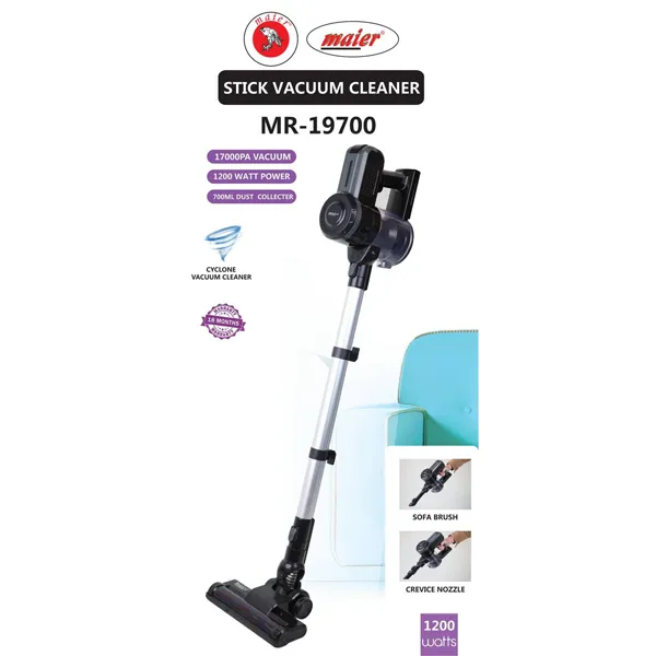 جارو برقی ایستاده مایر مدل 19700 یکی از جدیدترین و کاربردی‌ترین محصولات خانگی برند معتبر مایر آلمان  است که با طراحی ارگونومیک و قدرت بالا، تجربه‌ای متفاوت از نظافت را برای شما به ارمغان می‌آورد. این مدل با توان ۱۲۰۰ وات واقعی، عملکرد فوق‌العاده‌ای در جمع‌آوری گرد و غبار ارائه می‌دهد و به لطف فناوری برش چرخشی جارو، حتی ذرات ریز و چسبنده نیز از سطح جدا می‌شوند. طراحی ایستاده و پرتابل بودن دستگاه، استفاده در فضاهای مختلف را آسان و بدون دردسر کرده است.