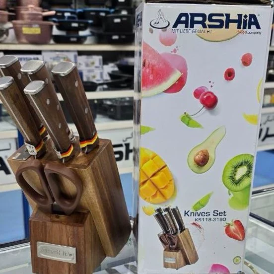 سرویس چاقوی 7 تیکه پایه چوبی عرشیا مدل KS118-3190