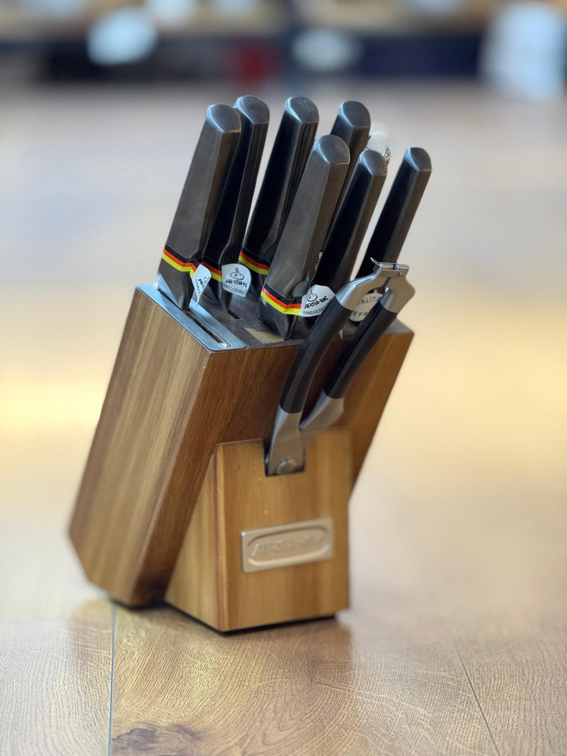 برند آلمانی عرشیا در زمره قدیمی ترین نام های تجاری جهان بوده است. این برند و نشان به مرور زمان به یکی از معتبرترین نام های تجاری در صنعت ابزار و ظروف آشپزی تبدیل شده است که کیفیت،زیبایی و کارایی را یکجا در محصولات خود گرد هم آورده است.استند و سرویس چاقو عرشیا مدل KS112-3270 از جمله جدیدترین محصولات این برند آلمانی است که کارایی، کیفیت و خلاقیت و زیبایی در طراحی را به یکباره به آشپزخانه شما هدیه می کند.بدنه این استند از جنس چوب با کیفیت با رویه ای از جنس پلی پروپیلن سنتتیک ساخته شده و رنگی منحصر به فرد با زیبایی و جلوه ای خاص و همرنگ با دسته ابزار همراه خود دارد که ظاهری فوق العاده مدرن داشته و همراه با 9ابزار کارامد عرضه می شود. تیغه کلیه این ابزار از استیل ضد زنگ 18/10 با کربن بالا که باعث حداکثر کارایی و مقاومت می شود ساخته شده و کلیه تیغه ها به روش انجماد سخت تولید شده و برندگی و دوام بسیار بالایی دارند.