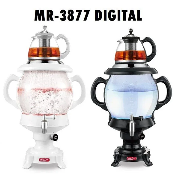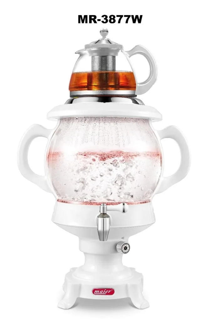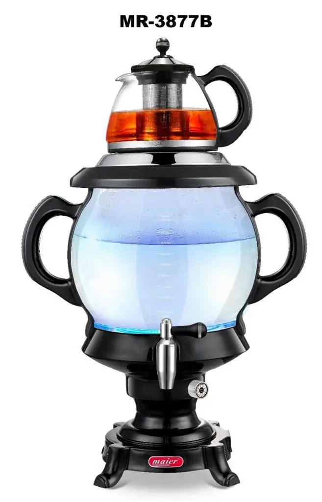 این سماور مجهز به ترموستات هوشمند و حالت گرم نگهدارنده است که دمای آب را در حالت ایدهآل حفظ میکند، بدون اینکه چای یا آب جوش بیش از حد گرم شود یا سرد شود. یکی از ویژگیهای جذاب مدل 3877، قابلیت تنظیم دمای دیجیتال و سه نوع نور LED است که بسته به وضعیت عملکرد دستگاه، رنگ نور آن تغییر میکند و جلوهای بسیار زیبا به آشپزخانه شما میدهد. همچنین وجود قوری مخصوص چای در بستهبندی، این محصول را به یک پک کامل برای تهیه نوشیدنیهای گرم تبدیل کرده است.
