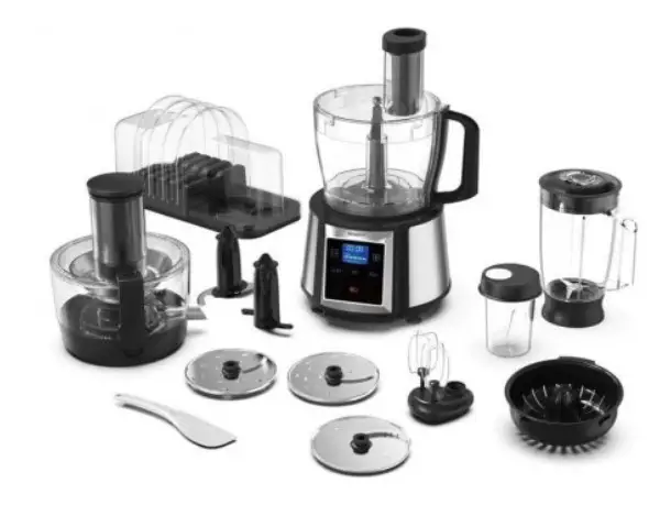 دارای کاردک پلاستیکی، دیسکهای رنده، تیغهها، دربپوش، پارچ مخلوط کن