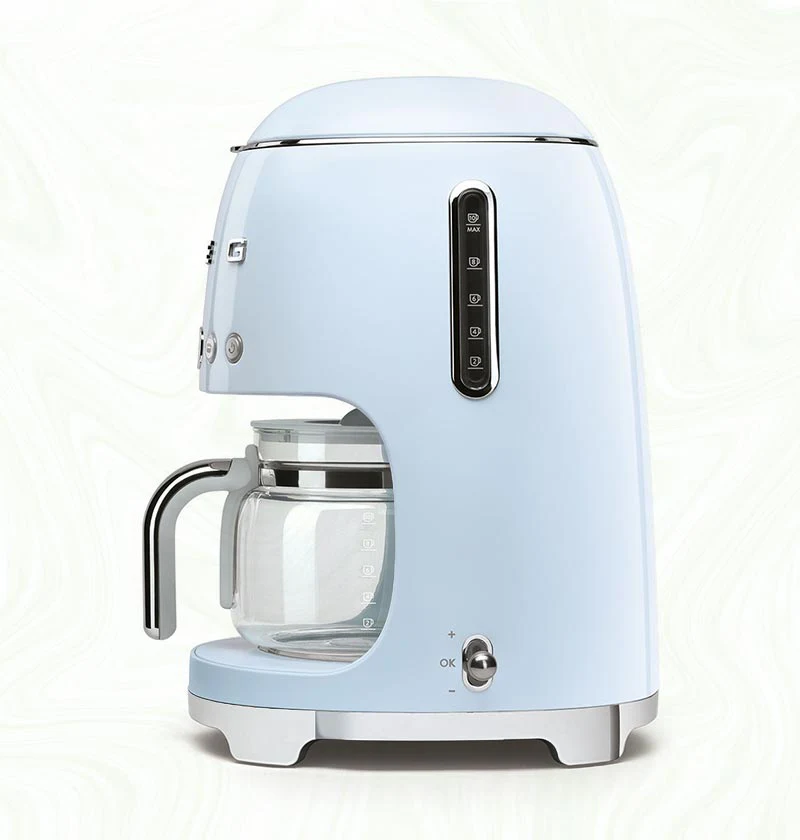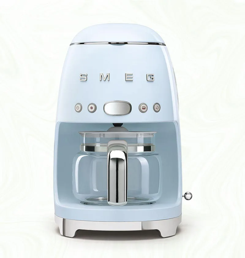 ویژگی های دستگاه قهوه ساز آبی پاستیلی اسمگ مدل DCF02PBEU قطره‌ای براق و مات