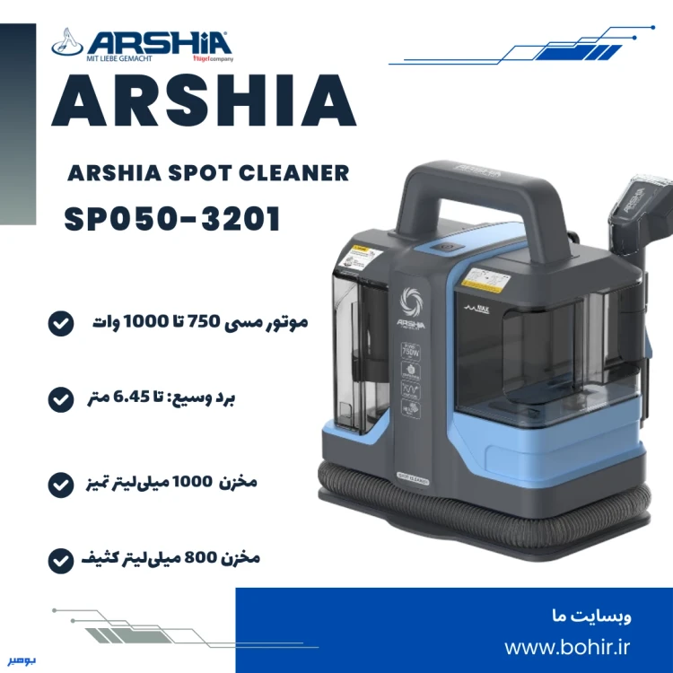 مبل شوی عرشیا مدل SP050-3201 با موتور 750 وات و عملکرد قدرتمند، گزینه‌ای ایده‌آل برای تمیزکاری سریع و عمیق لکه‌ها و آلودگی‌ها است. این دستگاه با تانک‌های دوگانه 1000 میلی‌لیتر برای آب تمیز و 800 میلی‌لیتر برای آب کثیف، امکان نظافت طولانی‌تر بدون نیاز به تعویض آب را فراهم می‌کند. برد 6.45 متری و کابل برق 5 متری به شما آزادی حرکت در محیط‌های بزرگ را می‌دهد. همراه با دو برس متنوع (کوچک و ضخیم)، این نقطه شوی برای انواع سطوح از جمله مبل، فرش، صندلی‌های خودرو و تشک‌ها مناسب است. خرید نقطه شوی عرشیا مدل SP050-3201 با قیمت مناسب از وب‌سایت بوهیر، تجربه‌ای سریع و راحت برای تمیزکاری در خانه و خودرو شماست.